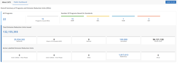 CATS Public Dashboard provides comprehensive and transparent information regarding the WB ER programs and the credits issued and transferred, as well relevant data encoded within unique serial numbers, in accordance with international standards
